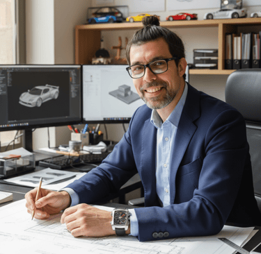 Desafío: Explorar la relación entre el diseño automotriz y la relojería suiza, buscando trasladar el lenguaje formal y la potencia visual de los superdeportivos a un objeto de uso cotidiano.
